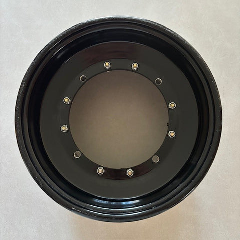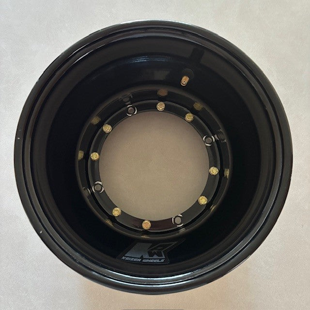 Keizer 7" Front Wheel. 10" Diameter. 2" Inner Half. 5" Outer Half. Black Powder Coated Finish. Mounted, but Never Raced.