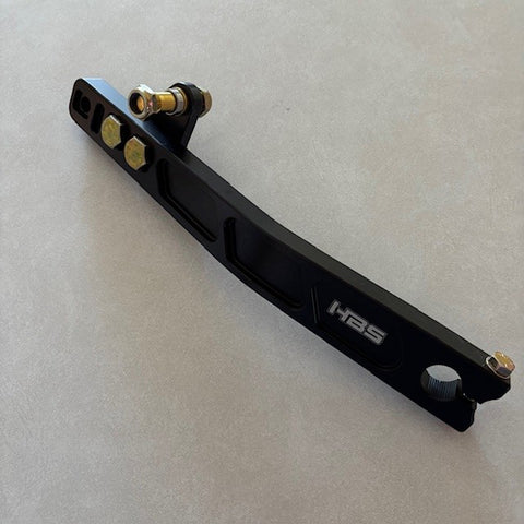 HBS Heavy Duty Right Rear Torsion Arm Assembly. 11-1/2" Length. 2" Offset. Black Anodized. Includes Shock Standoff Assembly with Titanium Stud. New, Never Used.